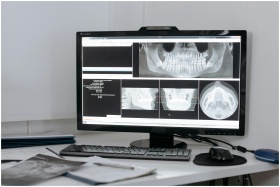 Monitor displaying dental X-ray images in a clinic