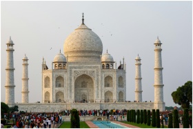 Captivating image of the Taj Mahal, a UNESCO World Heritage site, with tourists enjoying the view.