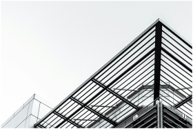 Low angle shot of a modern building with steel and glass design in Port of Spain.