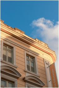 Elegant building facade with blue sky and clouds in Recife, Brasil.