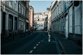 Empty alleyway flanked by historic buildings under