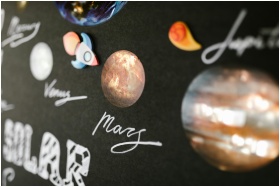 Creative depiction of the solar system planets for school project on a dark background.