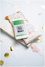 A health passport for COVID-19 displayed on a map with confetti, symbolizing safe travel planning during the pandemic.