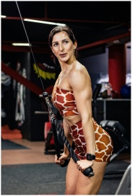 Woman working out at the gym in giraffe print acti