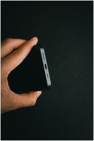 A detailed view of a smartphone being held against
