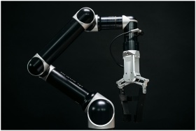 Close-up of a mechanical robotic arm with a dark background, showcasing advanced technology.