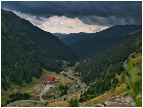 Dramatic landscape of Carpathian Mountains in Cârțișoara, Romania.