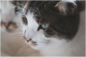 A detailed close-up portrait of a tabby cat with s