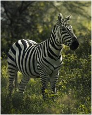 Zebra in a South African savanna with blurred back
