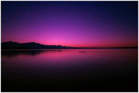 Breathtaking sunset over Chiemsee with vivid colors and tranquil waters in Bavaria, Germany.