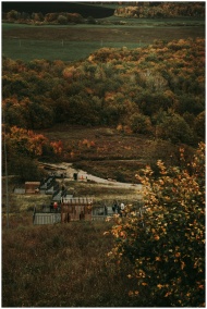 Scenic autumn view of a hilly landscape in Bashkortostan, Russia with vibrant fall colors.