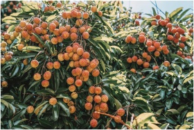 Vibrant lychee tree laden with ripe fruits under t