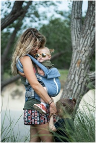 A loving mother embraces her children in a serene outdoor environment, highlighting family bonding.