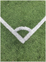 Detailed close-up of a white corner line on a gree