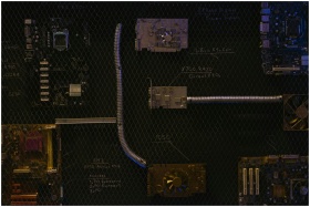 Artistic arrangement of circuit boards and cables