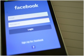 Mobile phone with Facebook login screen, highlighting digital connectivity and social media use.