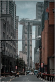 Explore the striking modern architecture in Chongqing's urban landscape, captured in a bustling city scene.