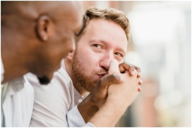 A happy interracial couple sharing a loving moment outdoors, embodying joy and connection.