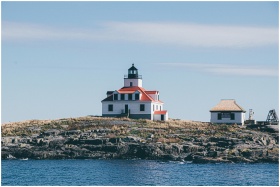 Charming lighthouse on a rocky seashore, ideal for