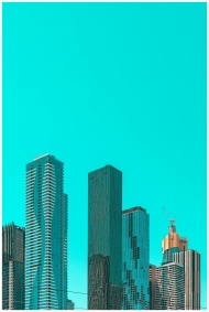Contemporary skyscrapers in Melbourne against a vi