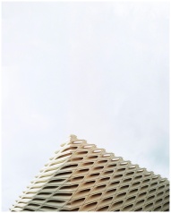 Minimalist rooftop design against bright sky in Lo