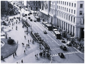 Black and white aerial view of a busy street in Ba