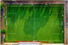 Drone shot of a soccer field in Jakarta, Indonesia