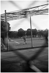 Black and white photo capturing a baseball game at a park in Montreal, emphasizing play and teamwork.