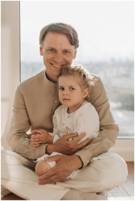 A loving father and daughter enjoying a moment together indoors, with warm lighting and smiles.