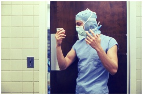 A medical practitioner in full PPE preparing in a