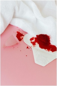 Close-up of blood stains on white underwear and to
