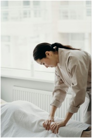 A masseuse giving a calming massage treatment, focusing on relaxation and wellness.