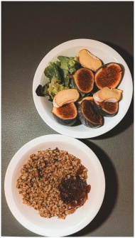 Tasty fig salad paired with nutritious buckwheat and preserves, perfect for a healthy meal.