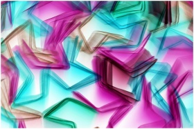 Vibrant abstract art featuring colorful blurred shapes in pinks, blues, and greens.