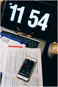 Smartphone displaying stock data on documents with
