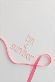 Empowering cancer survivor message with pink ribbon on white background for awareness.