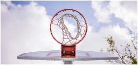 Low angle of modern basketball hoop on backboard a