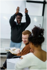 Students enjoying an interactive session in a diverse university classroom.