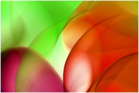 Dynamic abstract art piece featuring vivid curves of green, orange, and pink.