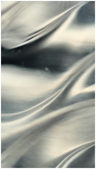 Close-up of abstract metallic silver fabric texture with flowing patterns.