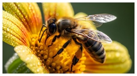 Honeybee collecting nectar on a vibrant yellow flo