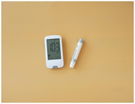 Close-up of a blood glucose meter and lancet pen o
