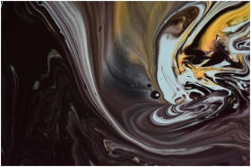Vibrant abstract art with swirling dark and warm colors on canvas.