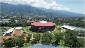 Aerial shot of a modern stadium in Ibagué, Colombi