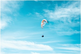 A vivid capture of paragliding against a bright bl