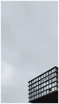 A modern building with a minimalist design against a gray sky, offering ample copy space.