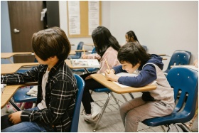 Students engaged in study sessions in a diverse classroom setting, showcasing learning and focus.