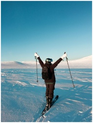 A skier celebrates amidst the vast, snowy terrain of Norway, capturing the essence of winter adventure.
