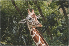 Close-up of a giraffe against a verdant backdrop i