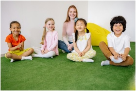 Children with a teacher enjoying time together in